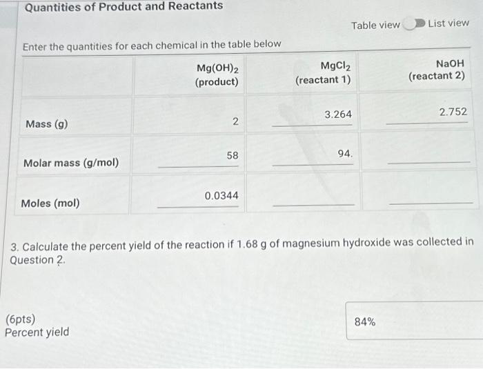 Solved (20pts) Reaction Yields Antacid Milk of Magnesia is a